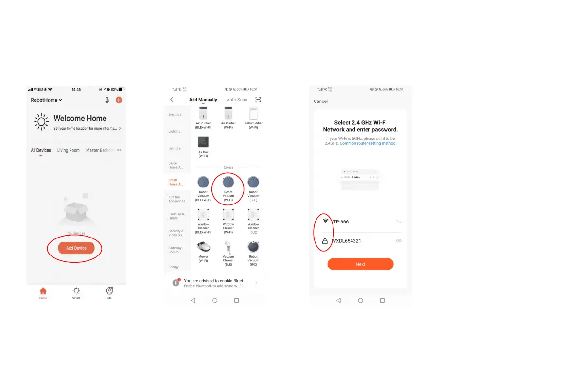 1. Power on the robot, press and hold recharge button for 6 seconds to enter AP mode, you will hear beep voice twice, power light