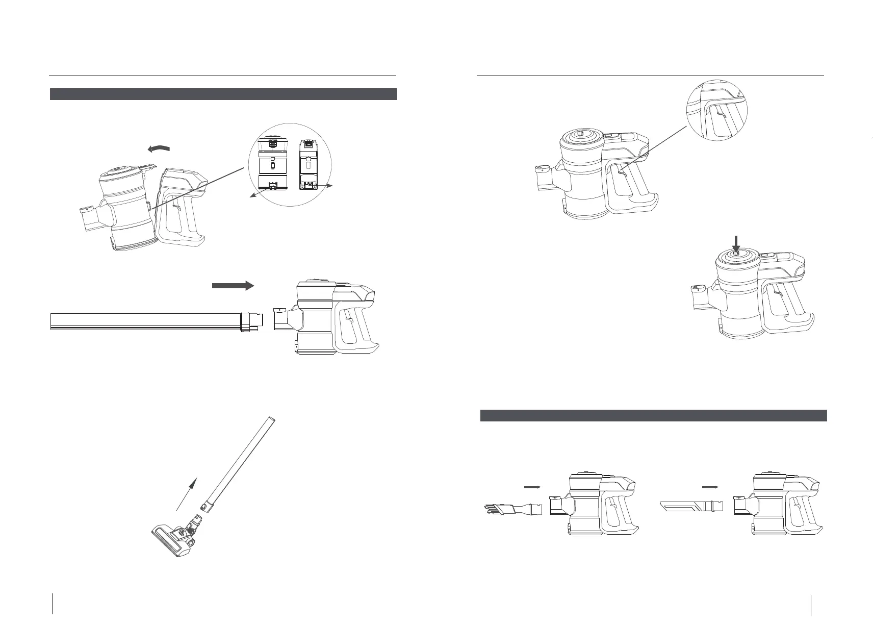 Insert the accessory(bristle brush or long crevice) to the main part as showed below until