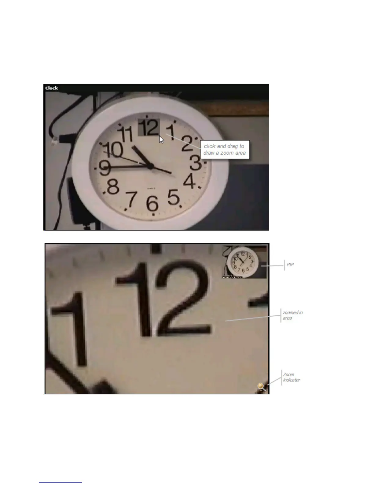 You may use digital zoom on any camera image. Draw a rectangle over the zoom area by drawing a diagonal line.