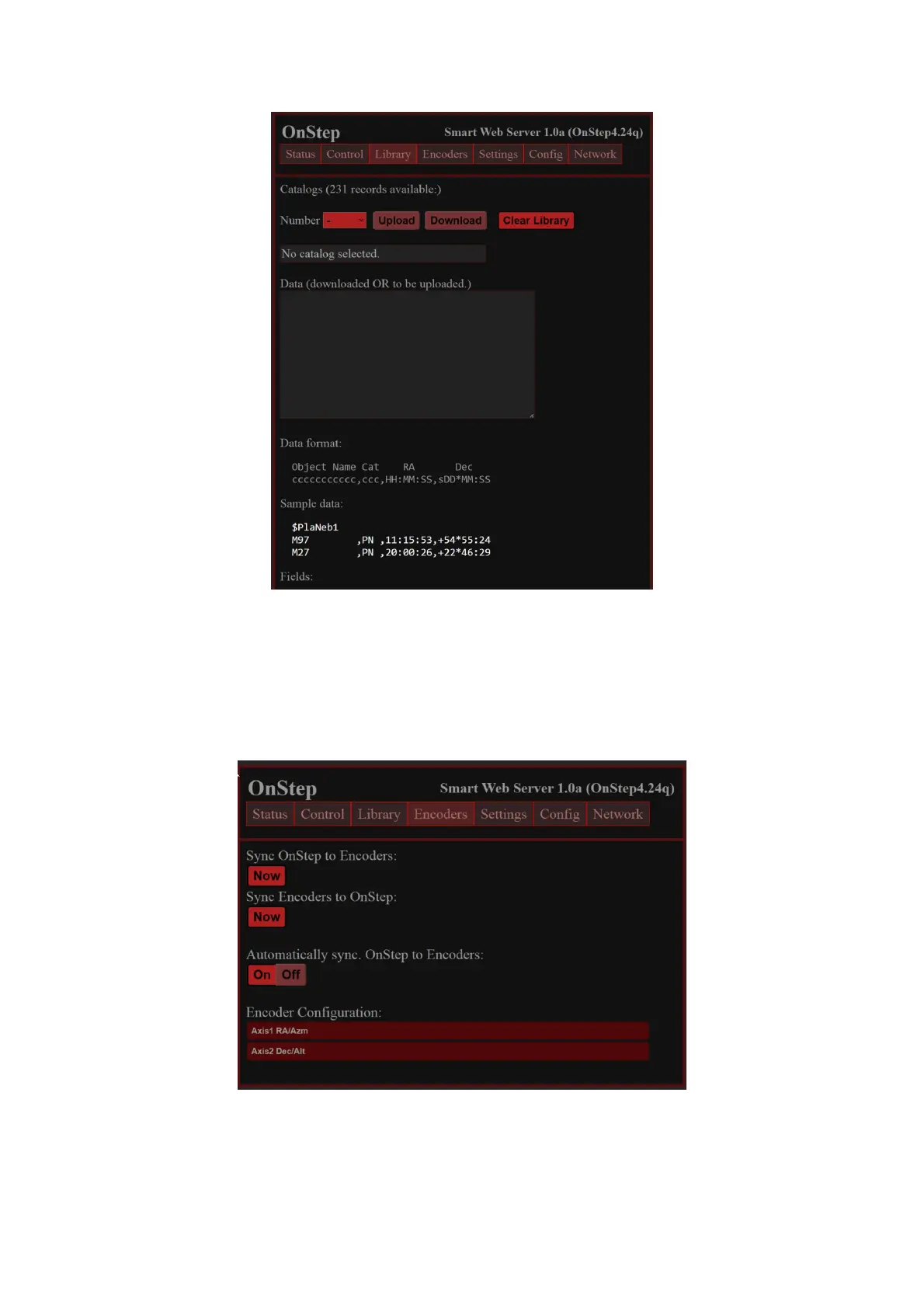 You can perform the telescope encoder operation under the “Encoder” tab: