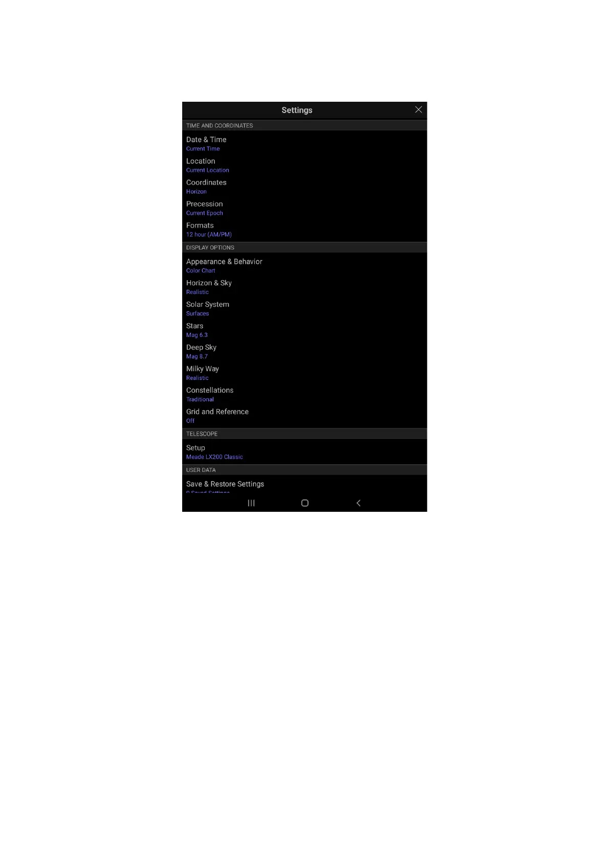 Click setting, and then choose the “Setup” under the TELESCOPE