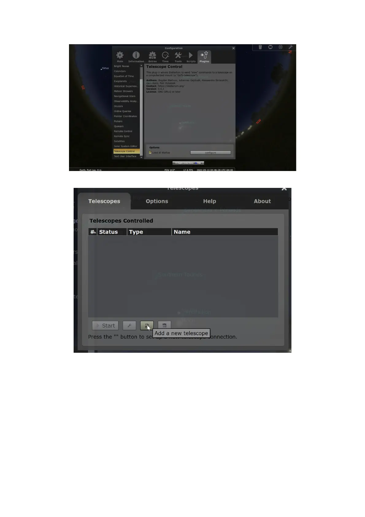o Select “Stellarium, directly through a serial port” and configure the