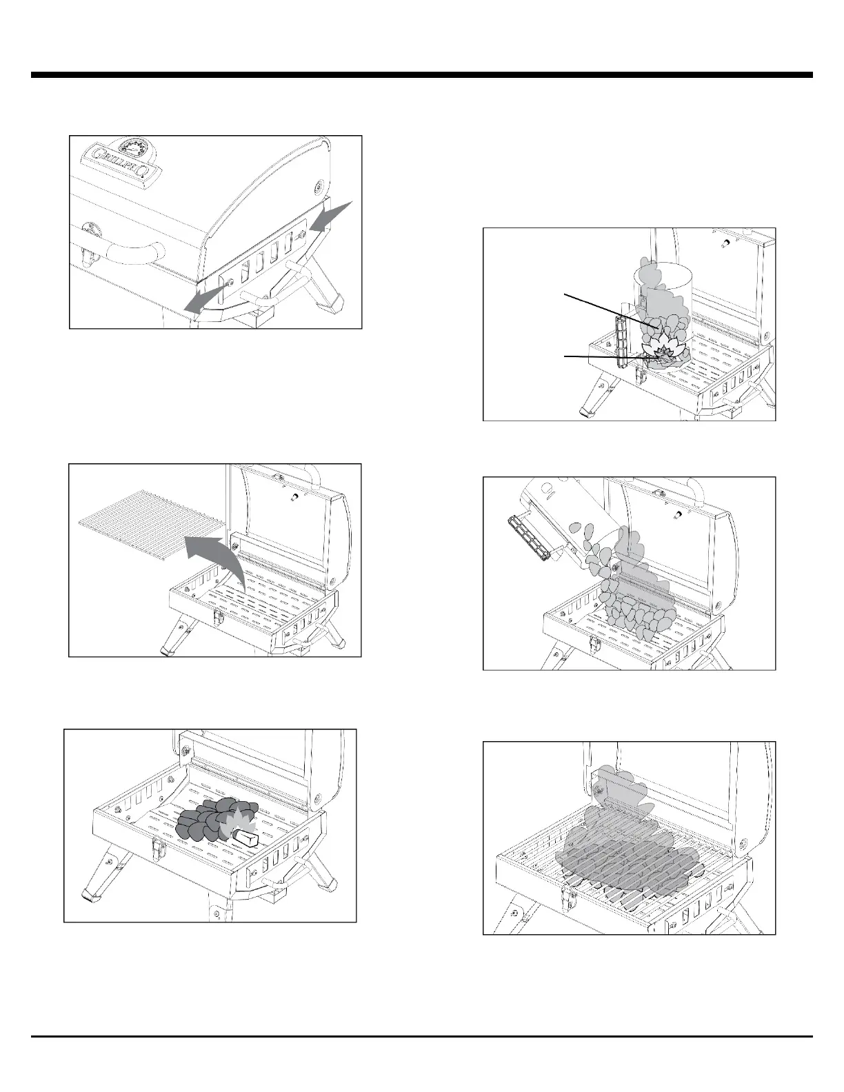 remplir le bac à charbon d’environ ½ kg (1 lb) de charbon