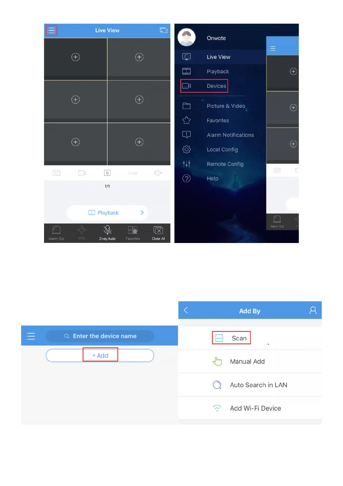 9. Click +Add and Scan to scan the QR code on the NVR monitor (Right click on NVR monitor