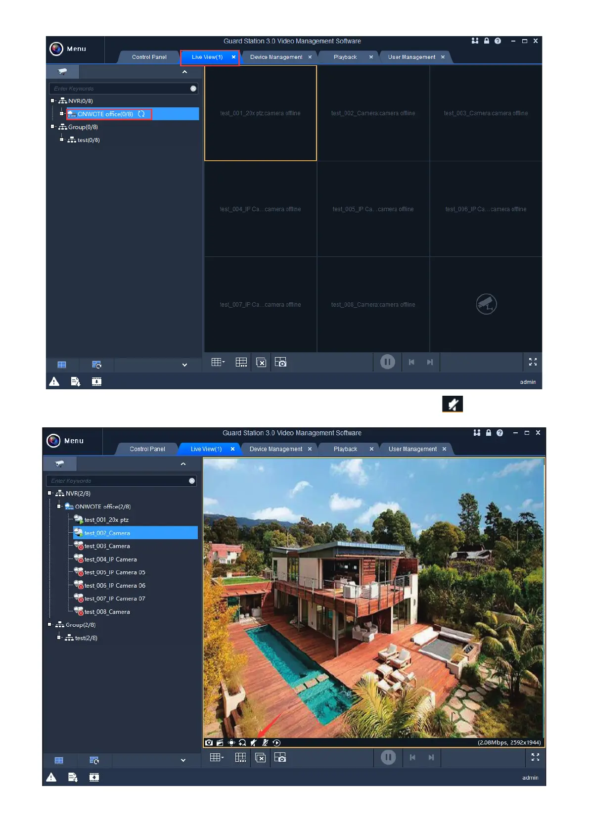 For audio cameras, move mouse to the channel to show up menu, click to play audio.