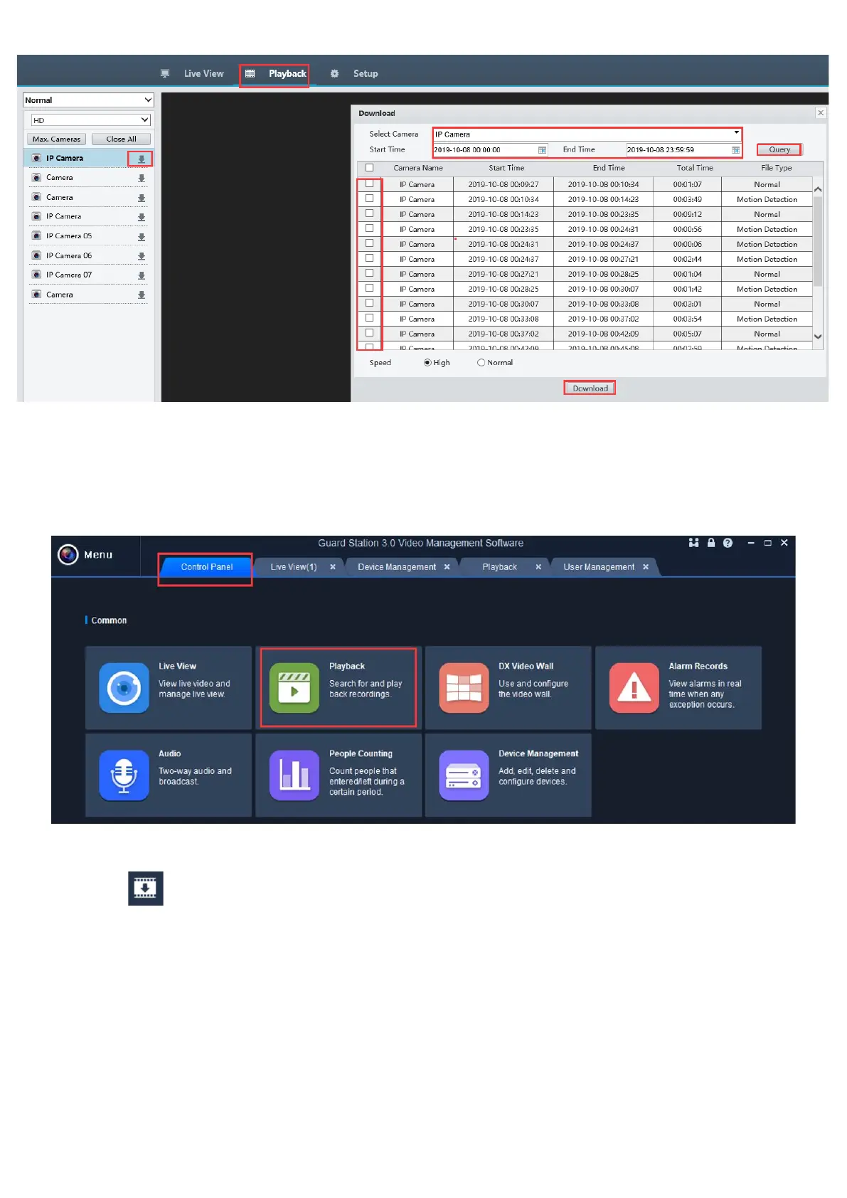 1. Open PC client software, go to Control Panel and click Playback.
