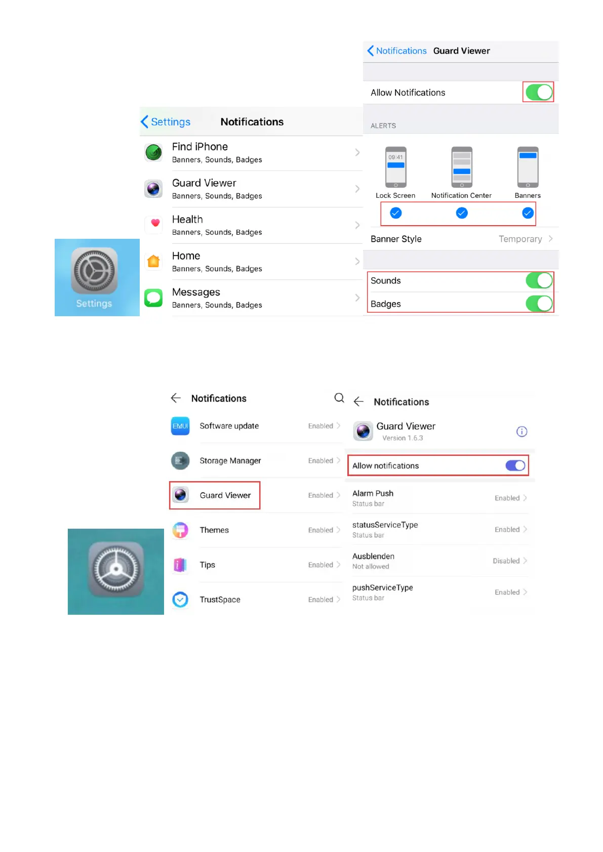 b. Android phone: Settings--> Notifications--> Allow Notifications.