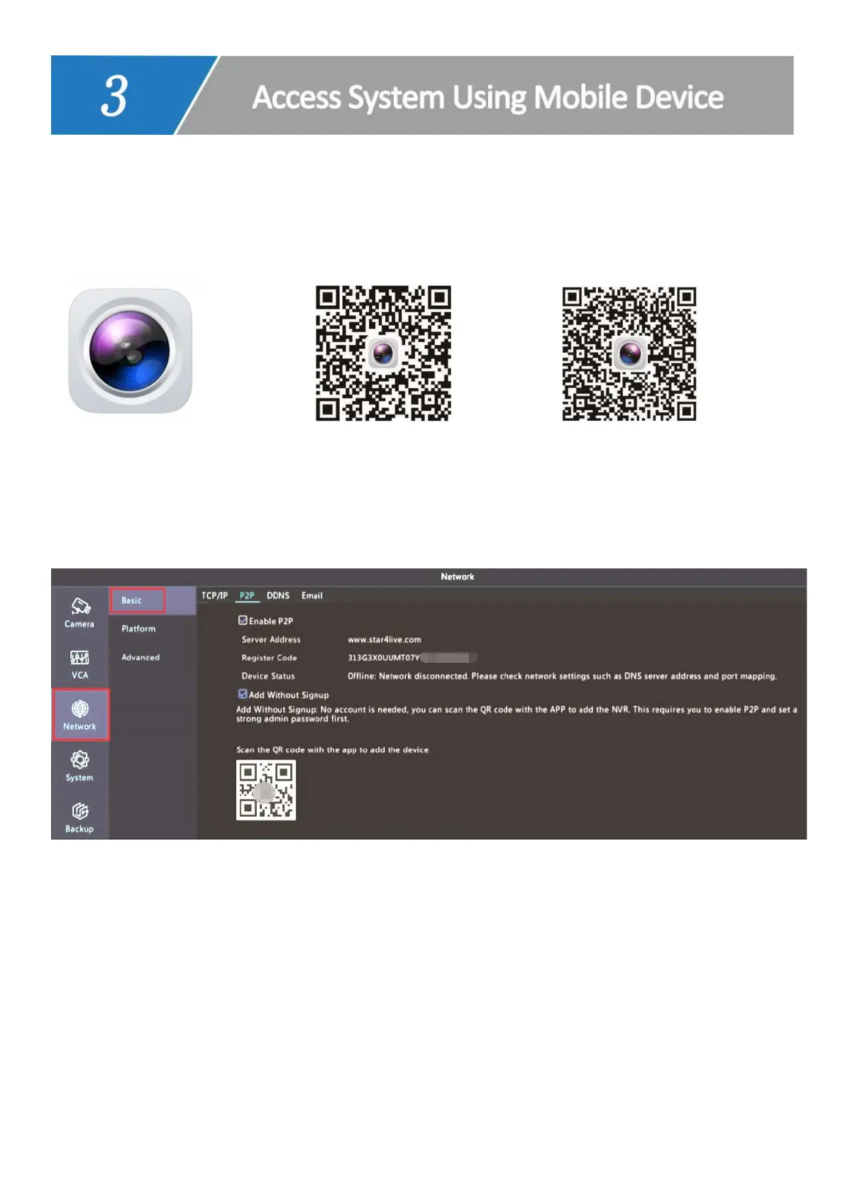 2. Go back to the NVR monitor. Right click, choose Menu--> Network--> Basic--> P2P.