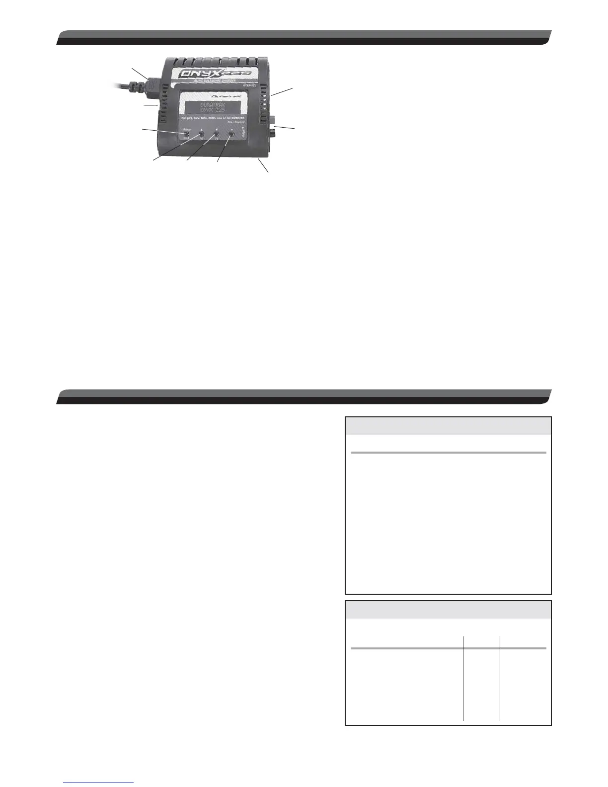 Always connect the charge lead to the charger rst. Then connect the battery to the charge lead. Always match polarities