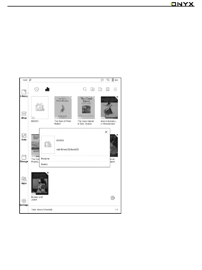 delete or rename sub-library are allowed. When deleting sub-library, the