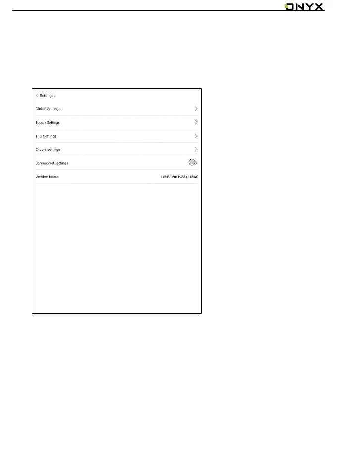 There are Global Settings, Touch Settings, TTS Settings, Export Settings,