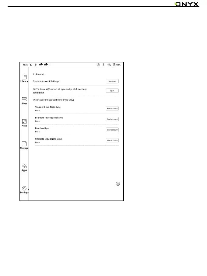 System account settings, ONYX account, and other account can be managed