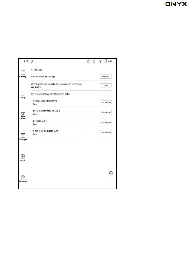 System account settings, ONYX account, and other account can be managed
