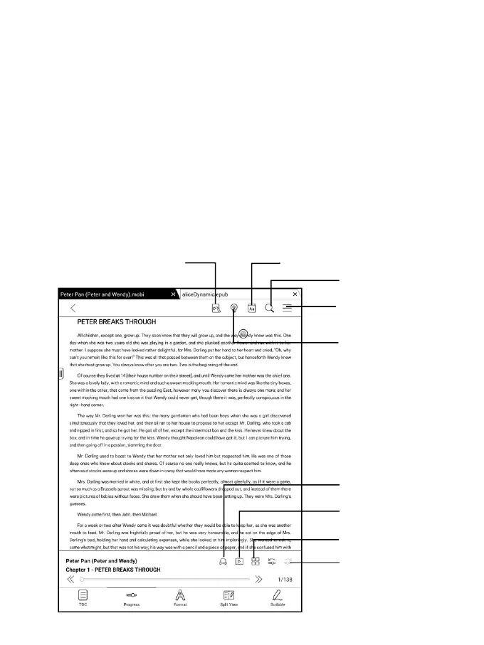 Tap any E-book cover to open an E-book. Full-screen reading without