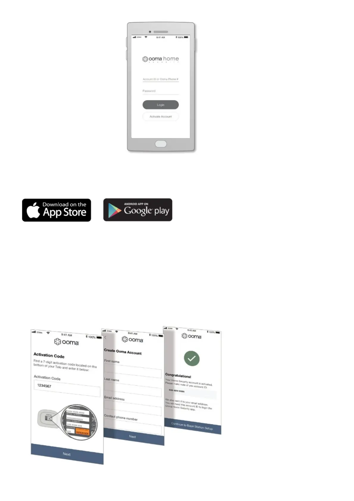 The Ooma Home Security app will guide you through the process of activating your Ooma Telo Base