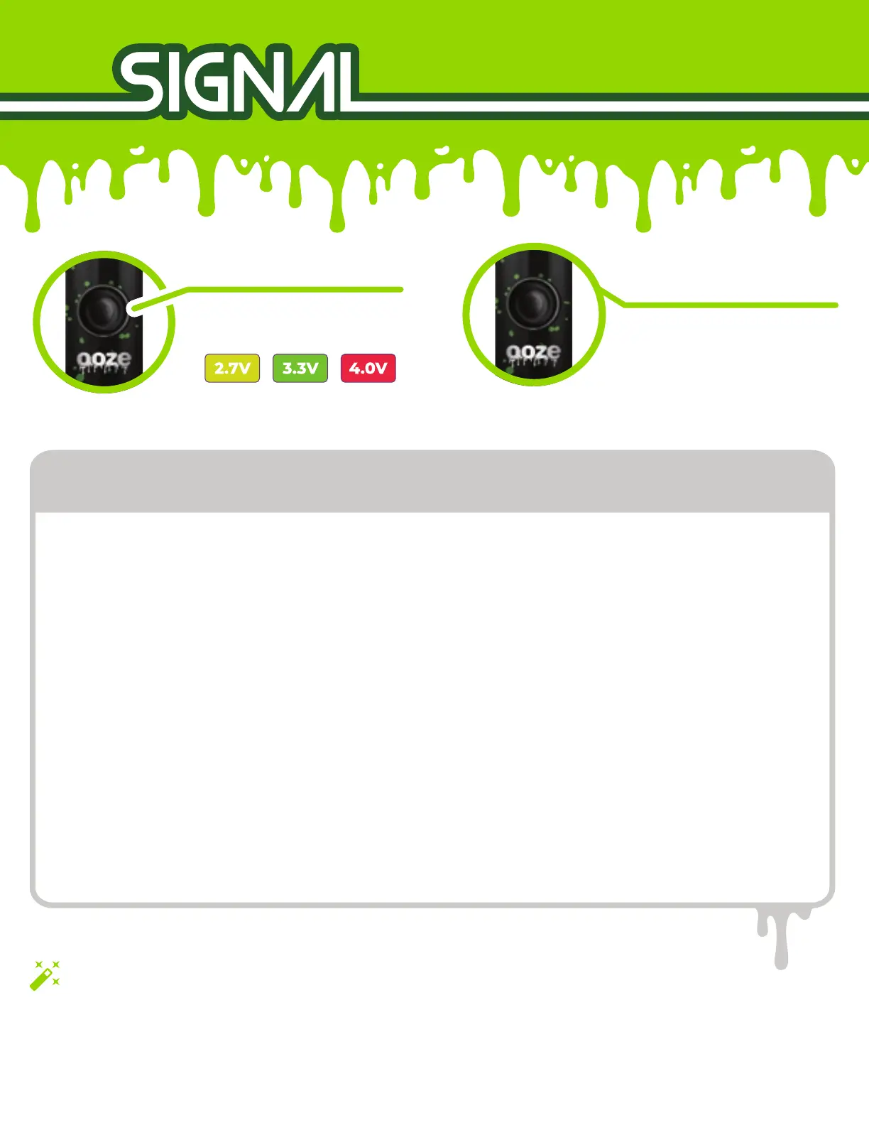 The Signal light will flash green 3x, then flash the voltage level