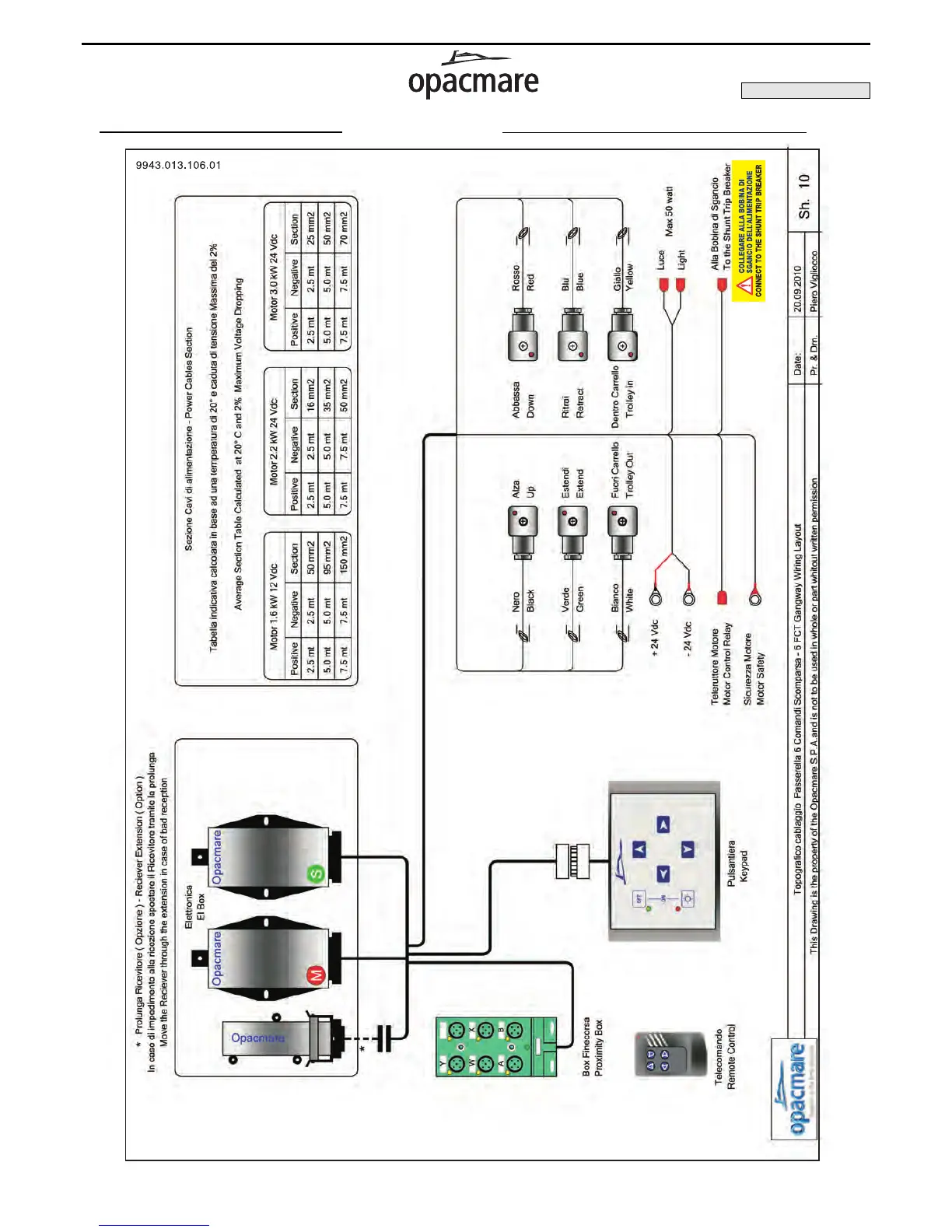 Opacmare 1042 - FTC Box Gangways Wiring Layout; Cablaggio Passerella 6 Comandi Scomparsa