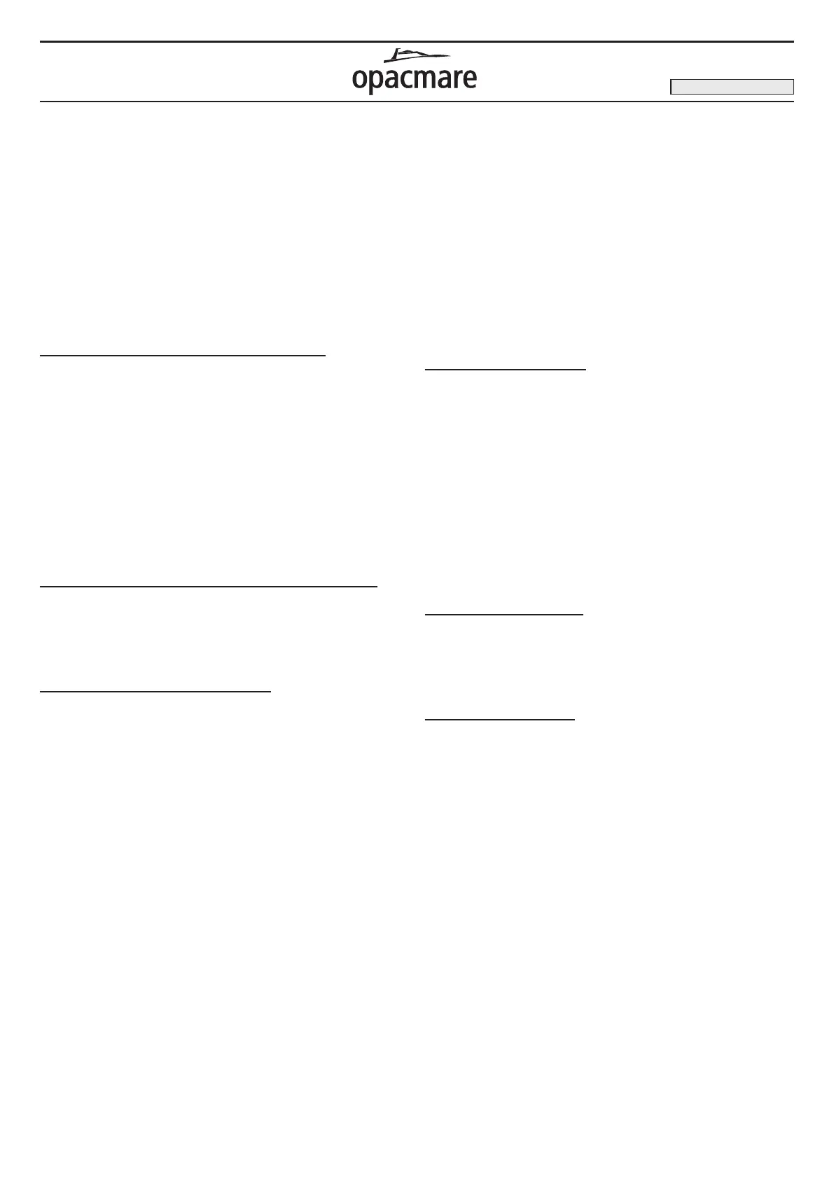 La OPACMARE S.p.A. garantisce che il prodotto è stato fabbricato con