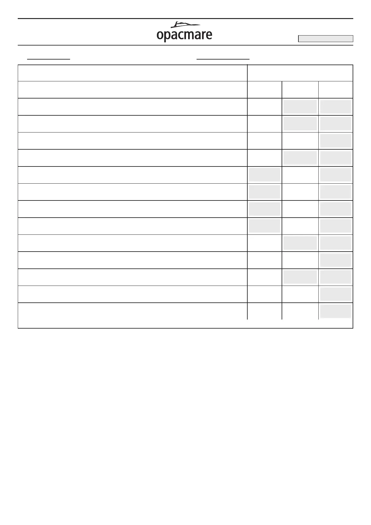 W= Weekly during use , M=Monthly during use, A=Annually after storage / S=Controllo Settimanale durante l’uso, M=Controllo Mensile durante l’uso, A=Controllo Annuale dopo il Rimessaggio