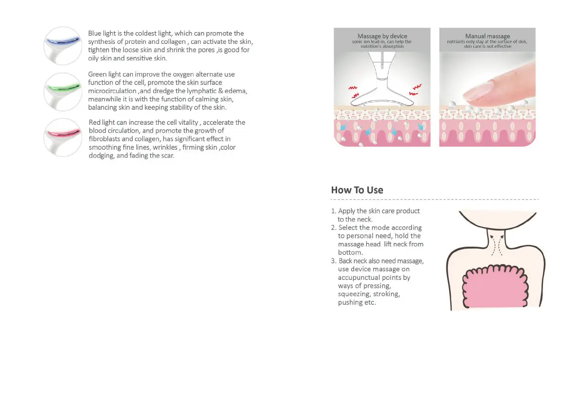 3 color light massage modes, can promote the blood circulation, stimulate the neck