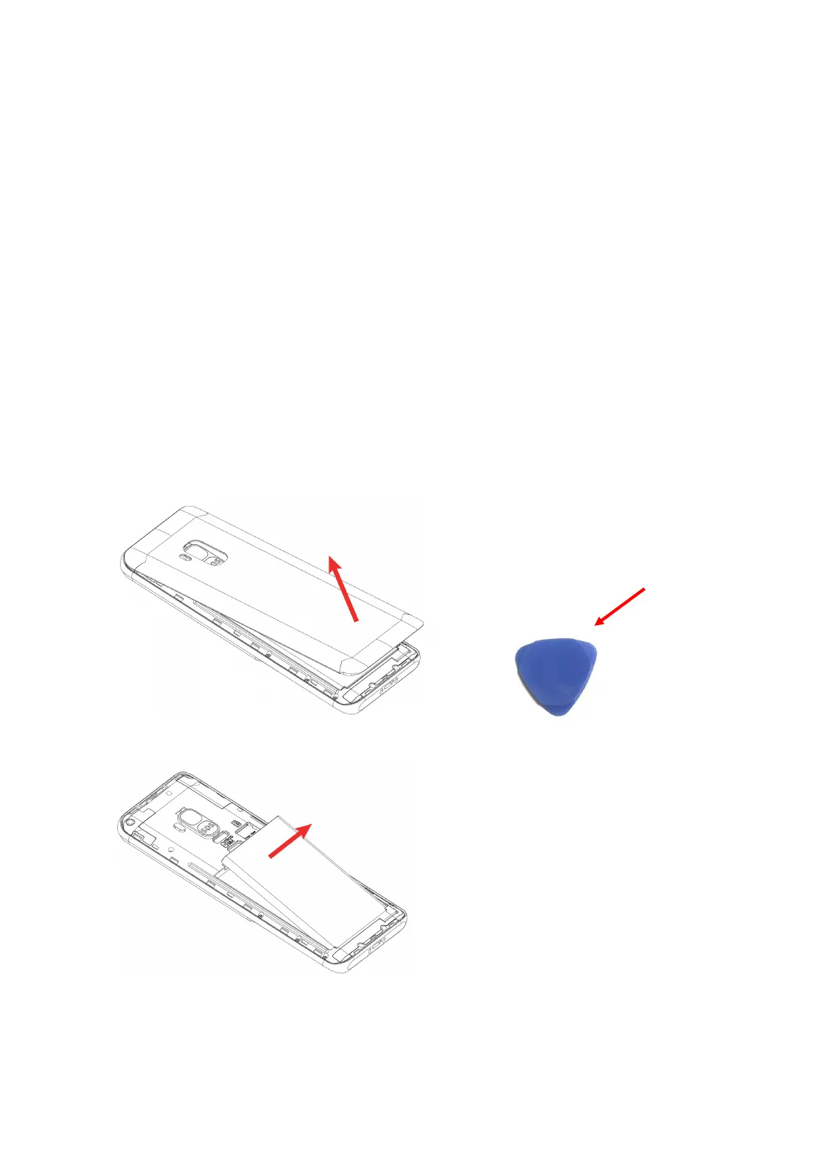 2. Remove the back cover from the phone using the plastic pick provided to help you remove