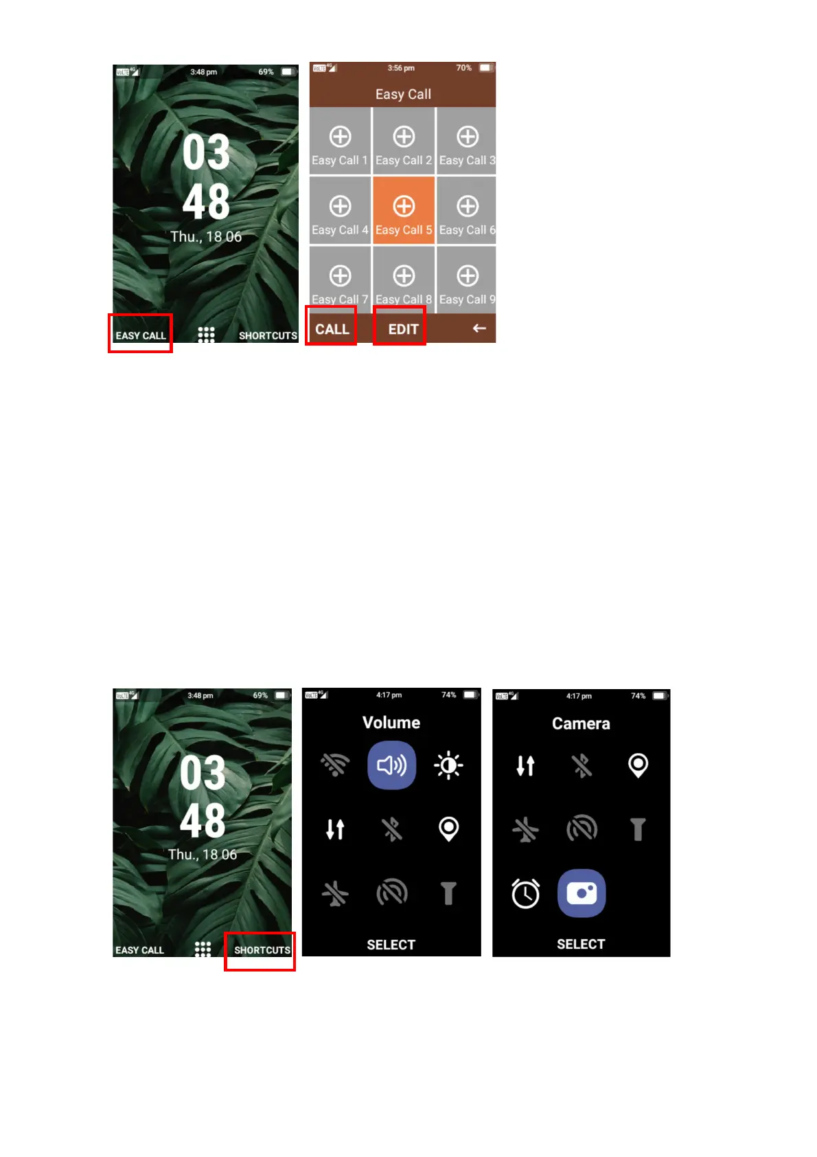Hotspot, Flashlight, Alarm Clock and Camera.