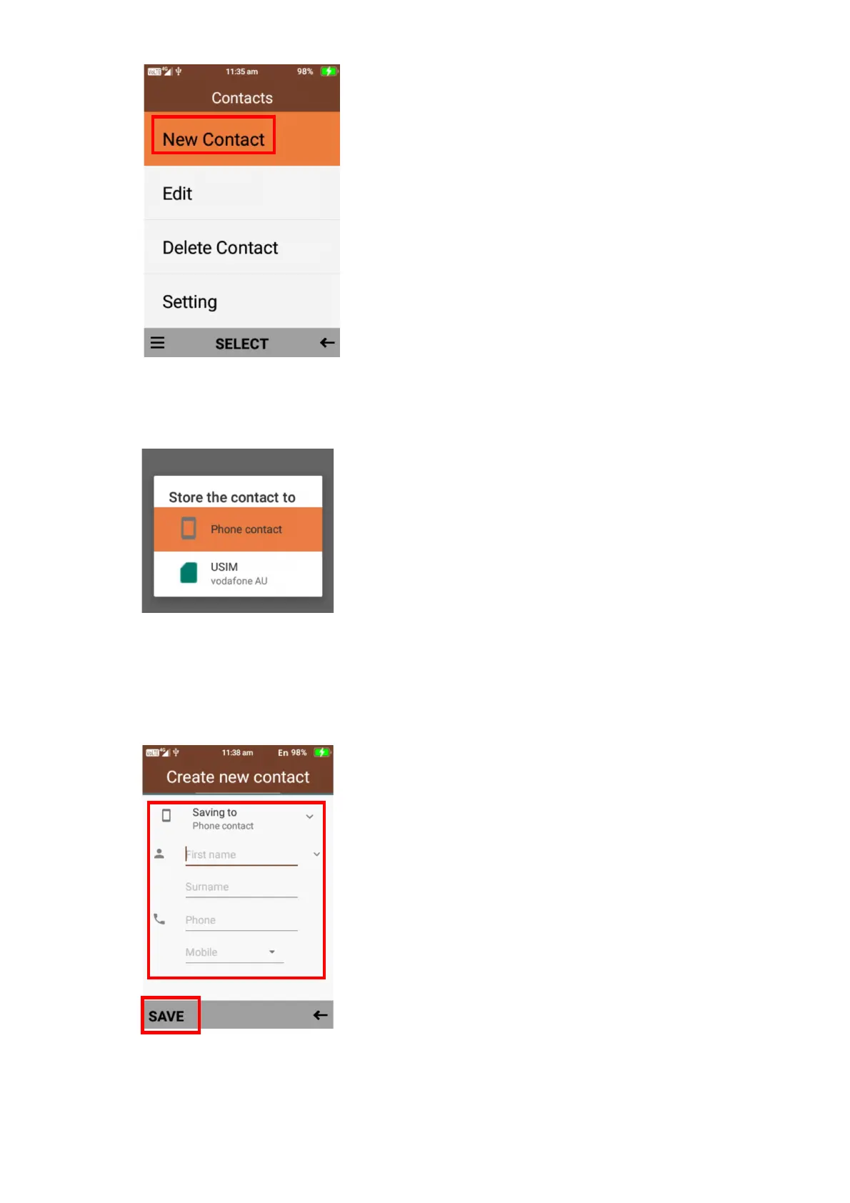 3. Choose were you want to save this contact, Phone or SIM