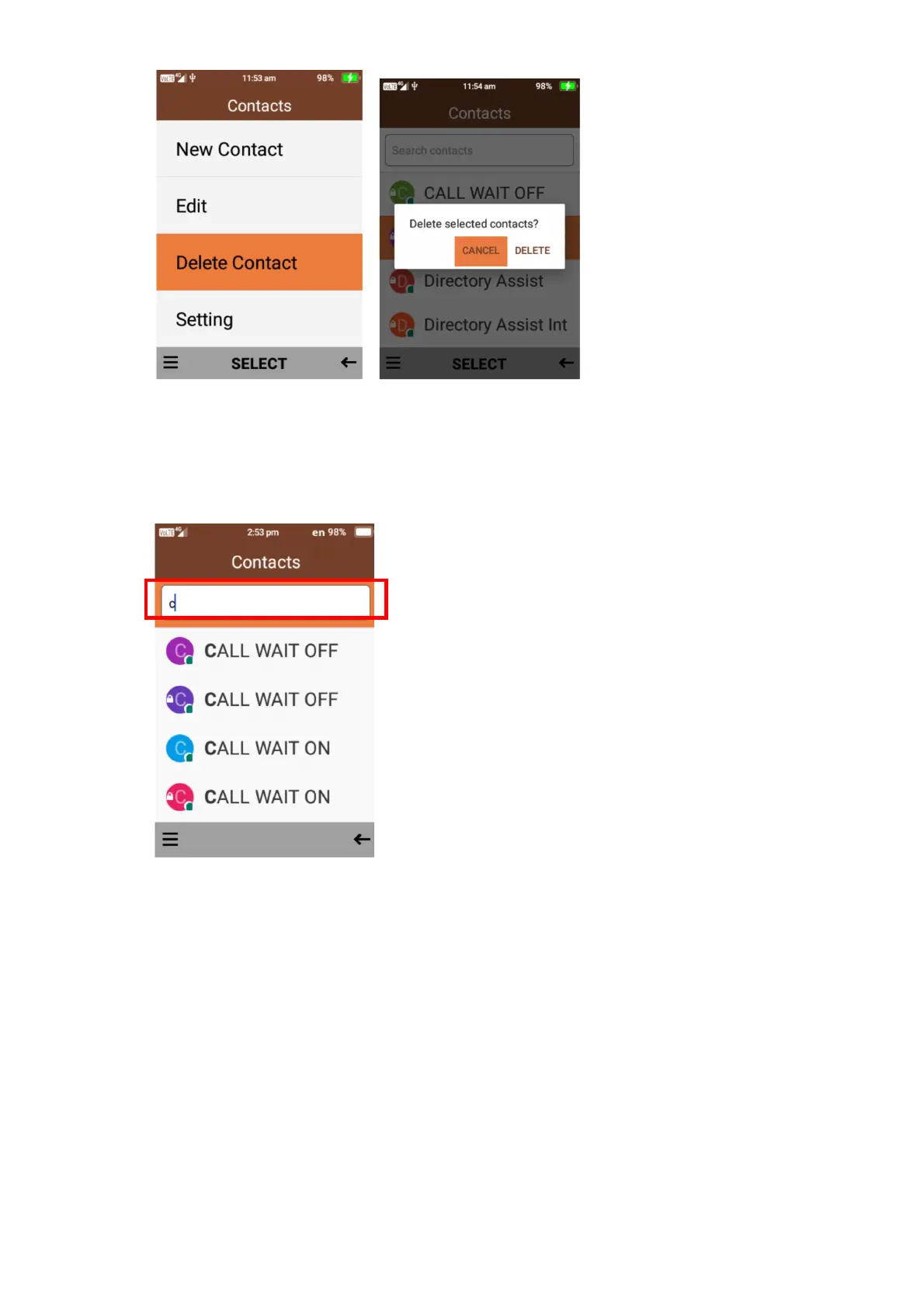 1. To search for a contact, type in the name of the contact you wish to find it will then show