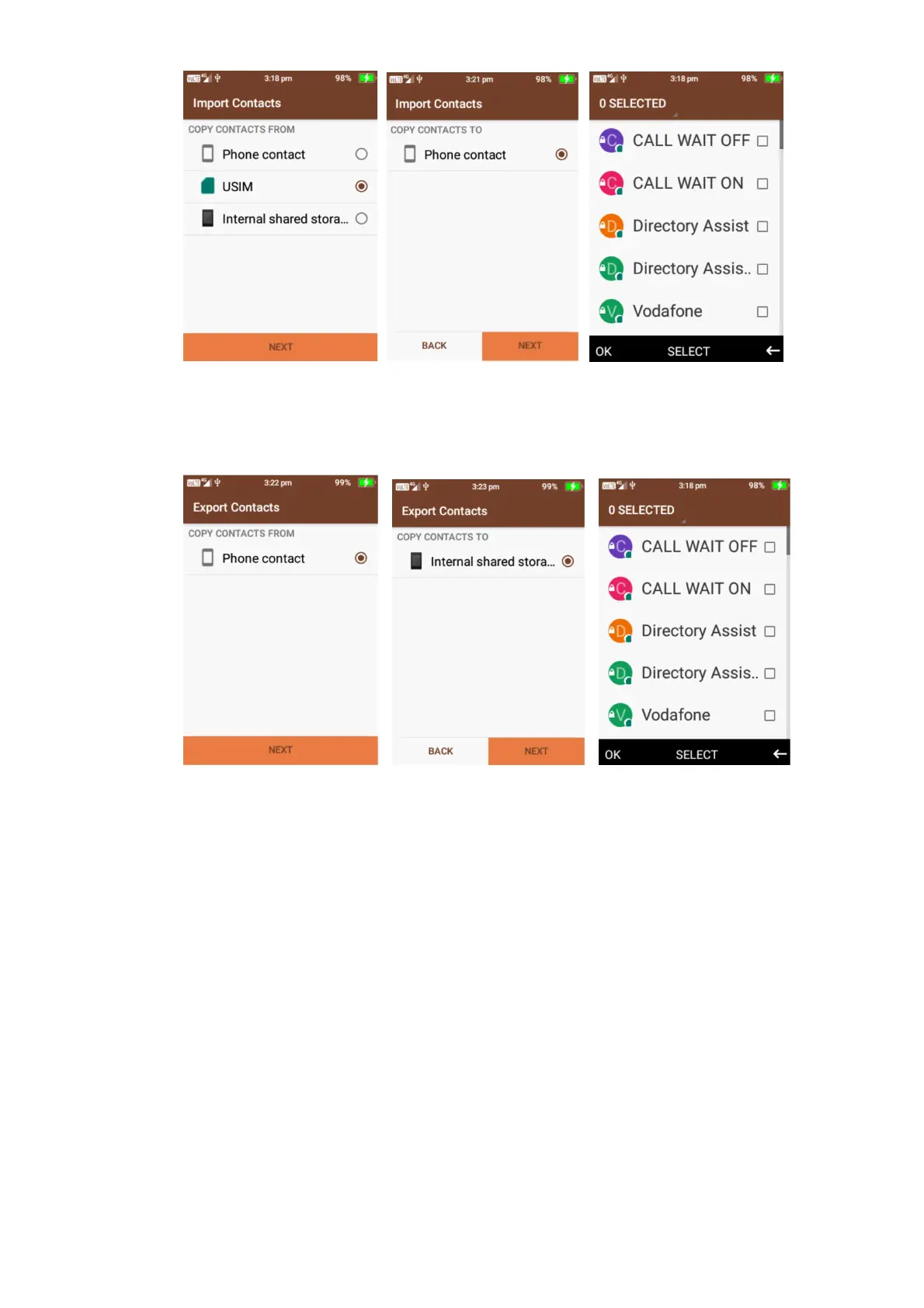 4. Within Export, you can export your phones contacts onto your sim card or TF card. Choose
