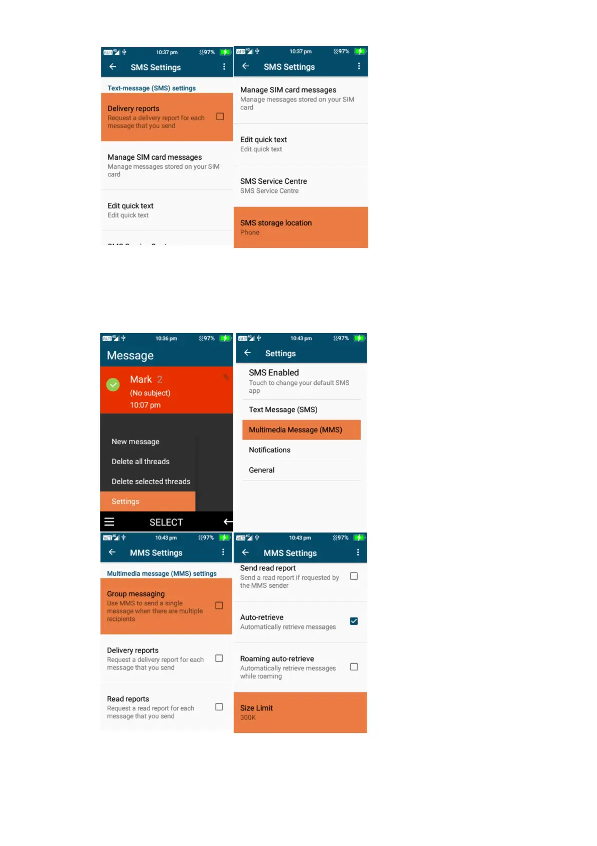 4. Settings – Multimedia Message (MMS) – Click on settings then Multimedia Message (MMS),