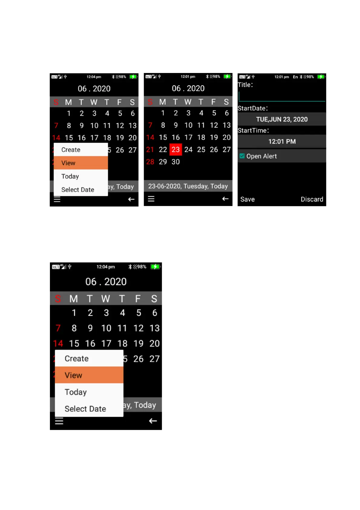 1. To create an event, click on the menu button, then select create. Type in the name, choose