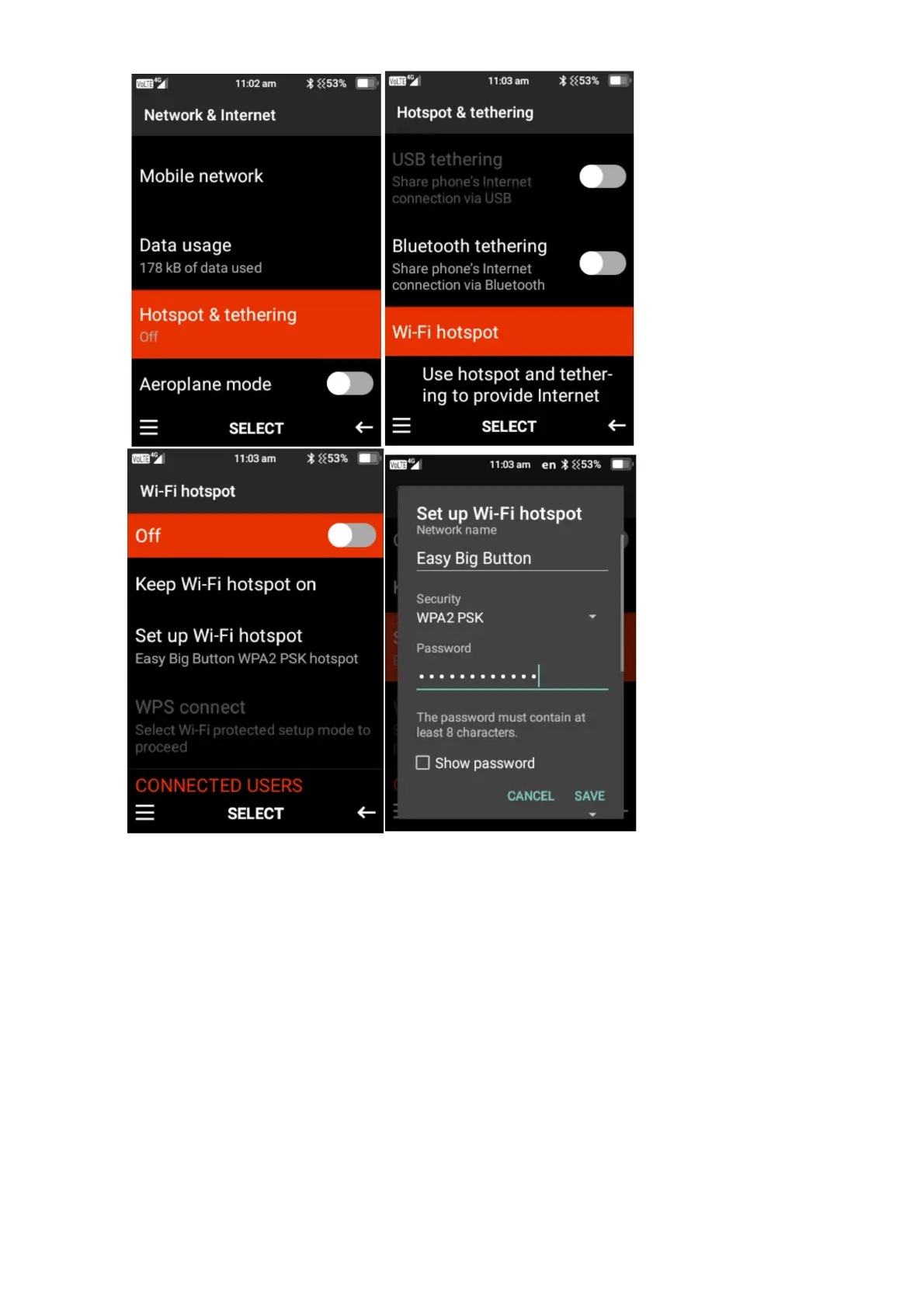 5. Aeroplane mode You can turn aeroplane mode on and off by pressing select on this