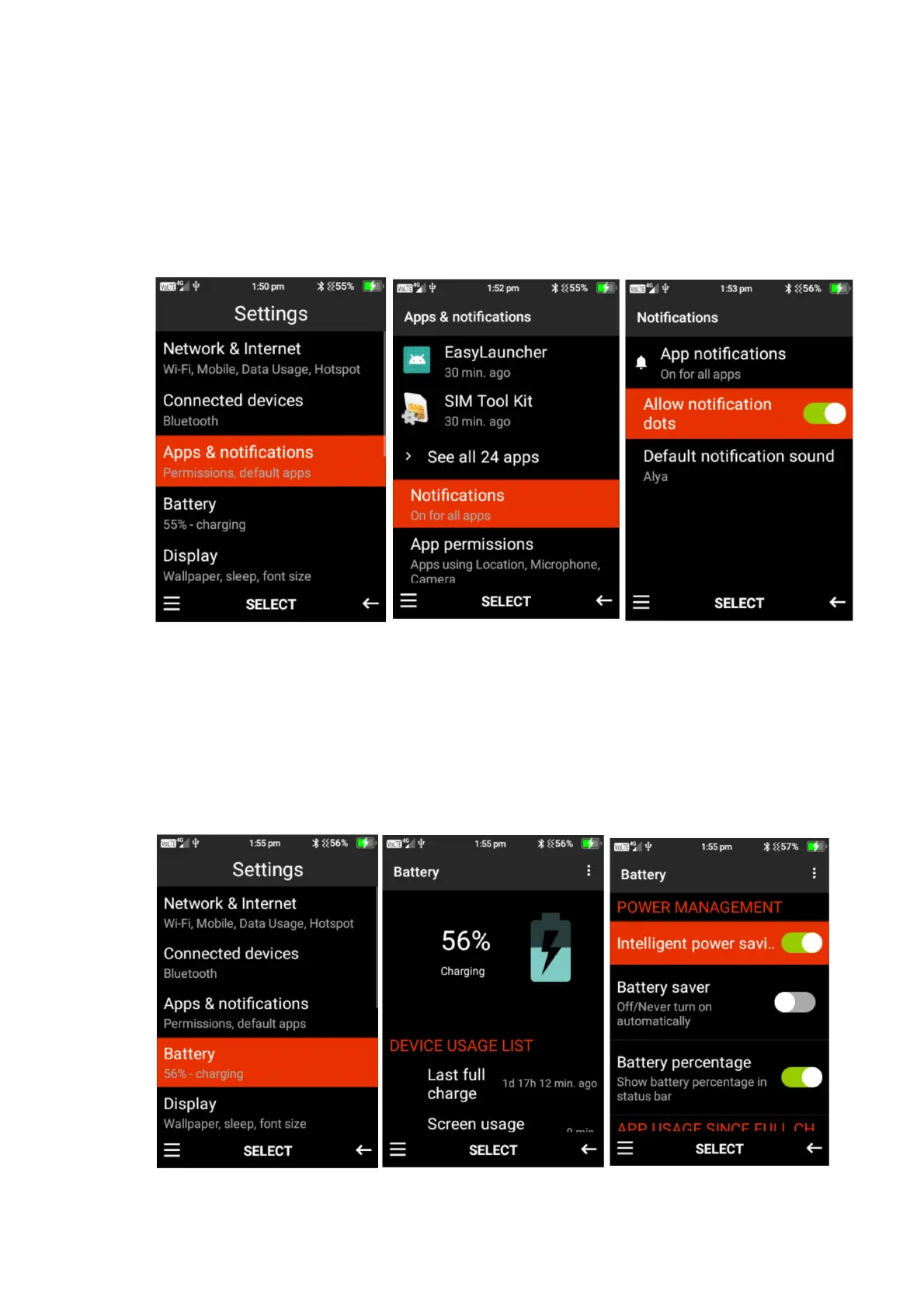 and adjust intelligent power savings, turn battery saver mode on or off, and turn battery