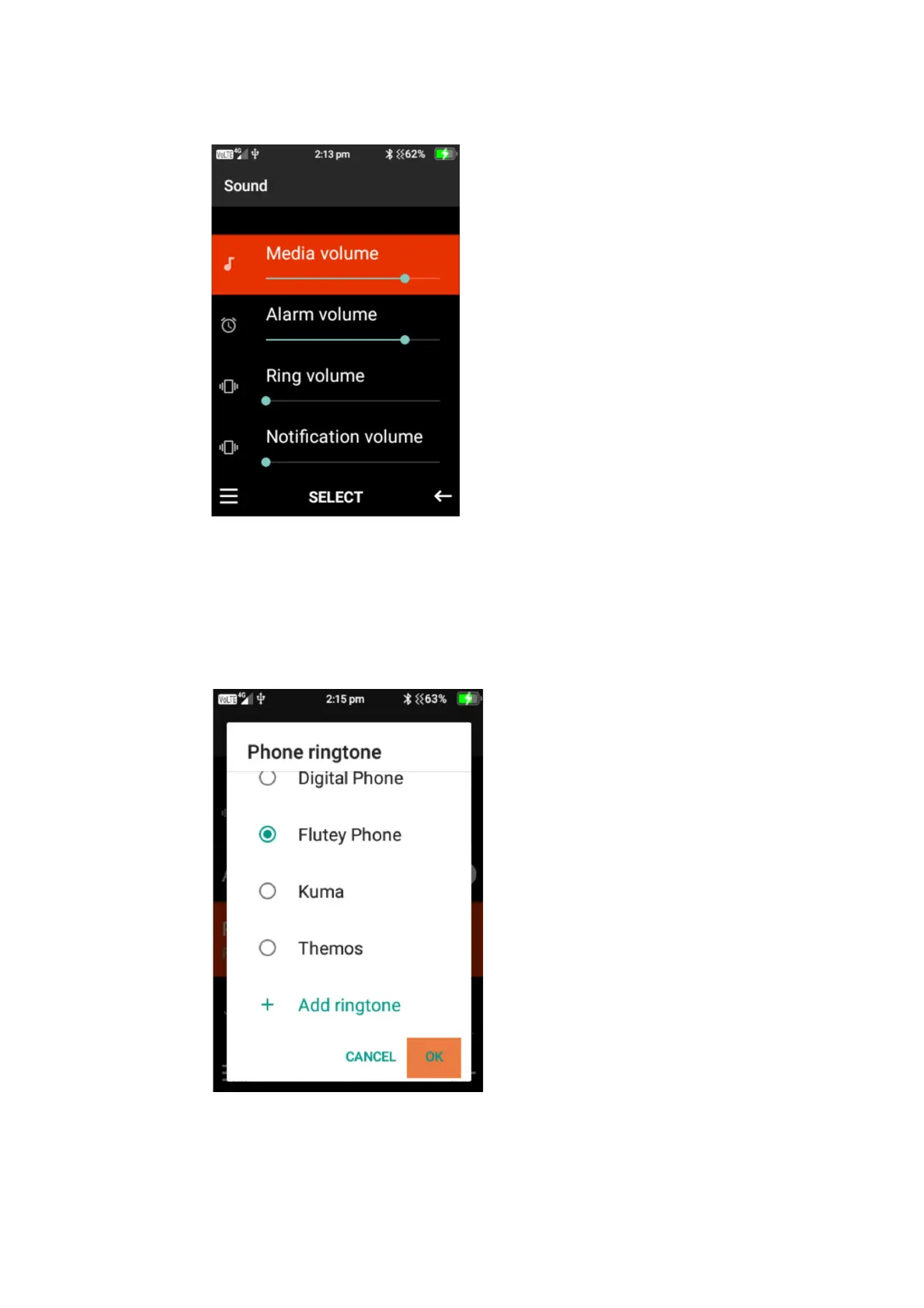 3. Phone ringtone – Press select on phone ringtone, using the up and down cursor buttons you