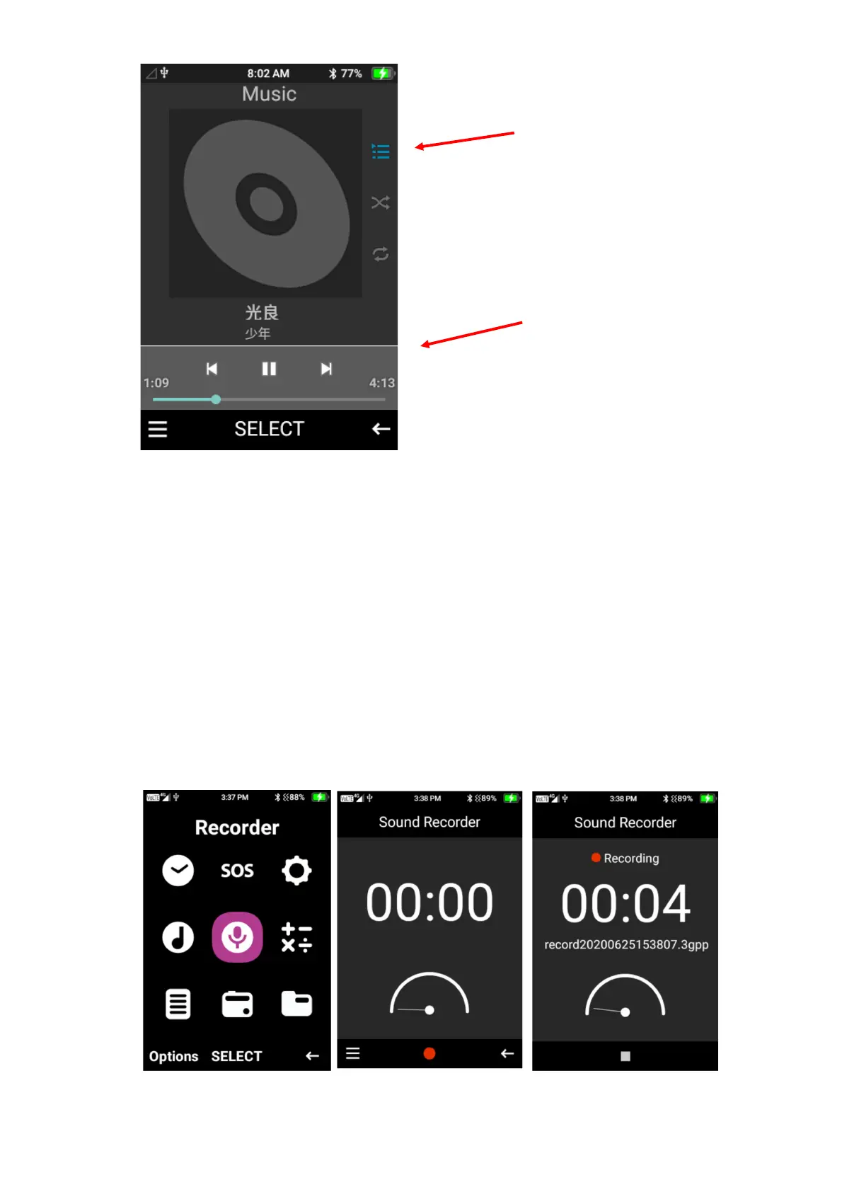 Press the ok button on the red record icon to record audio, then press stop to stop the recording,