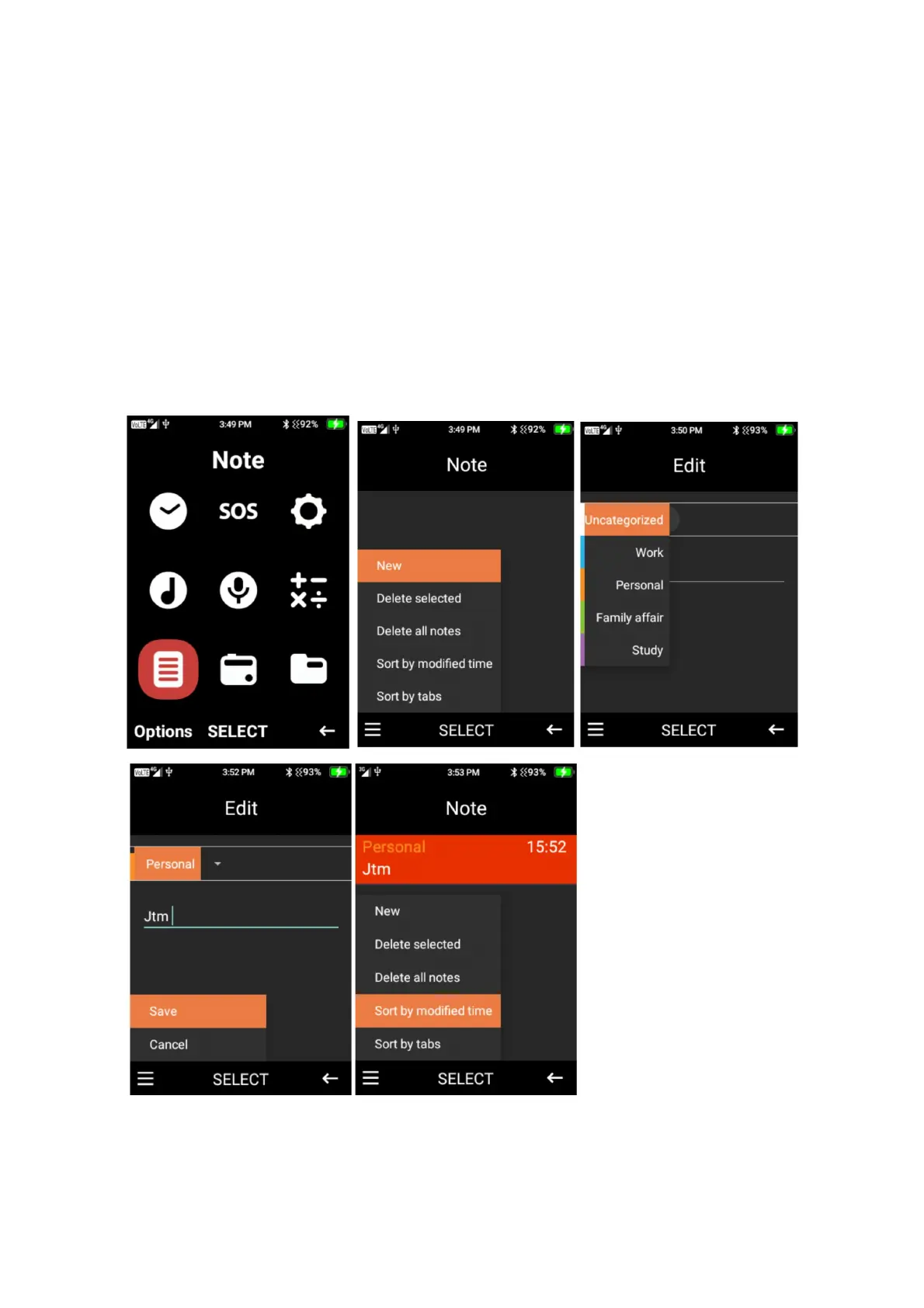 1. New note – to add a new note, select the menu icon then select new, you can categorise