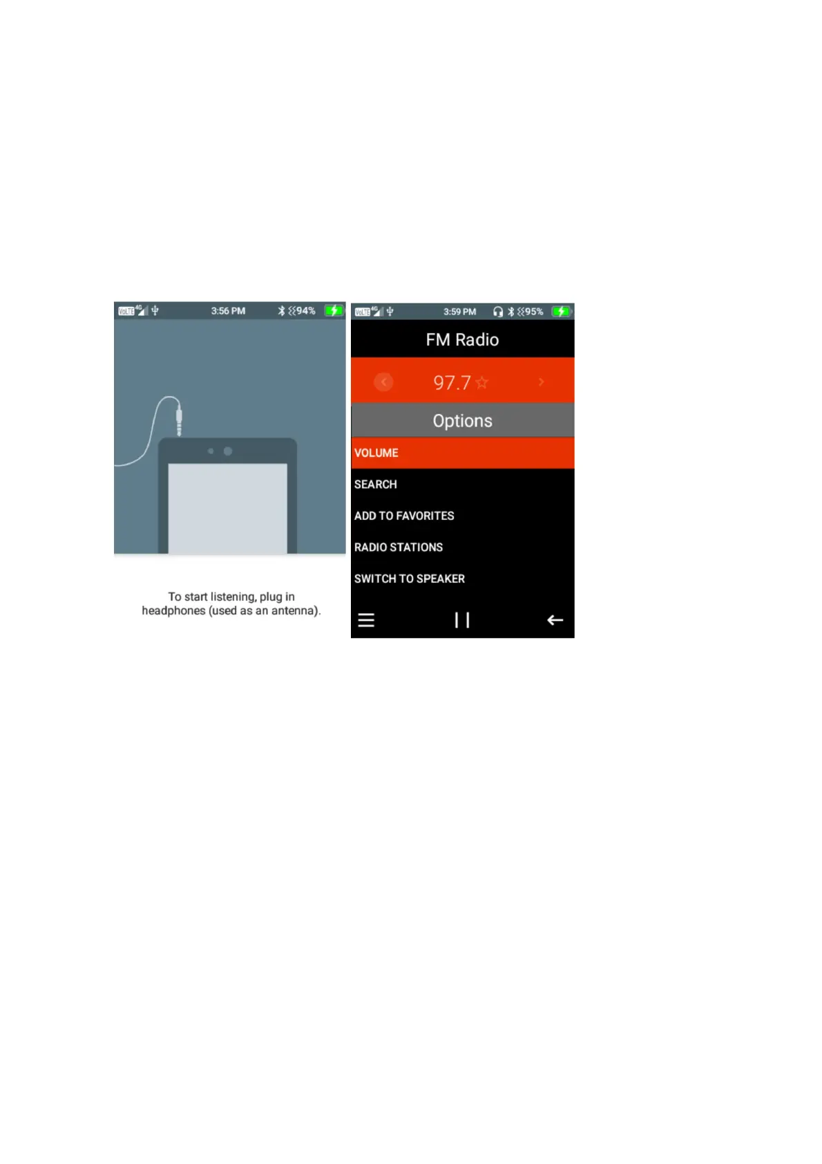 To use the FM Radio, ensure you insert headphones into the device, as these will act as the