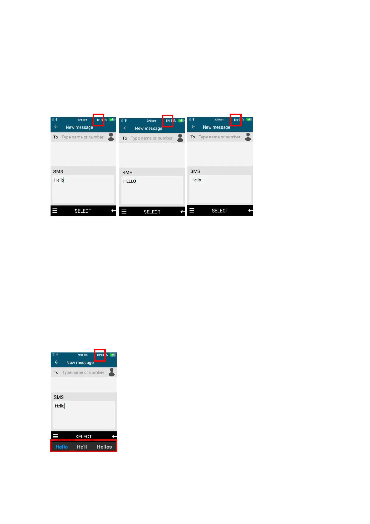 2. To type a capital letter, press the hash button until the “EN” sign appears, then follow the