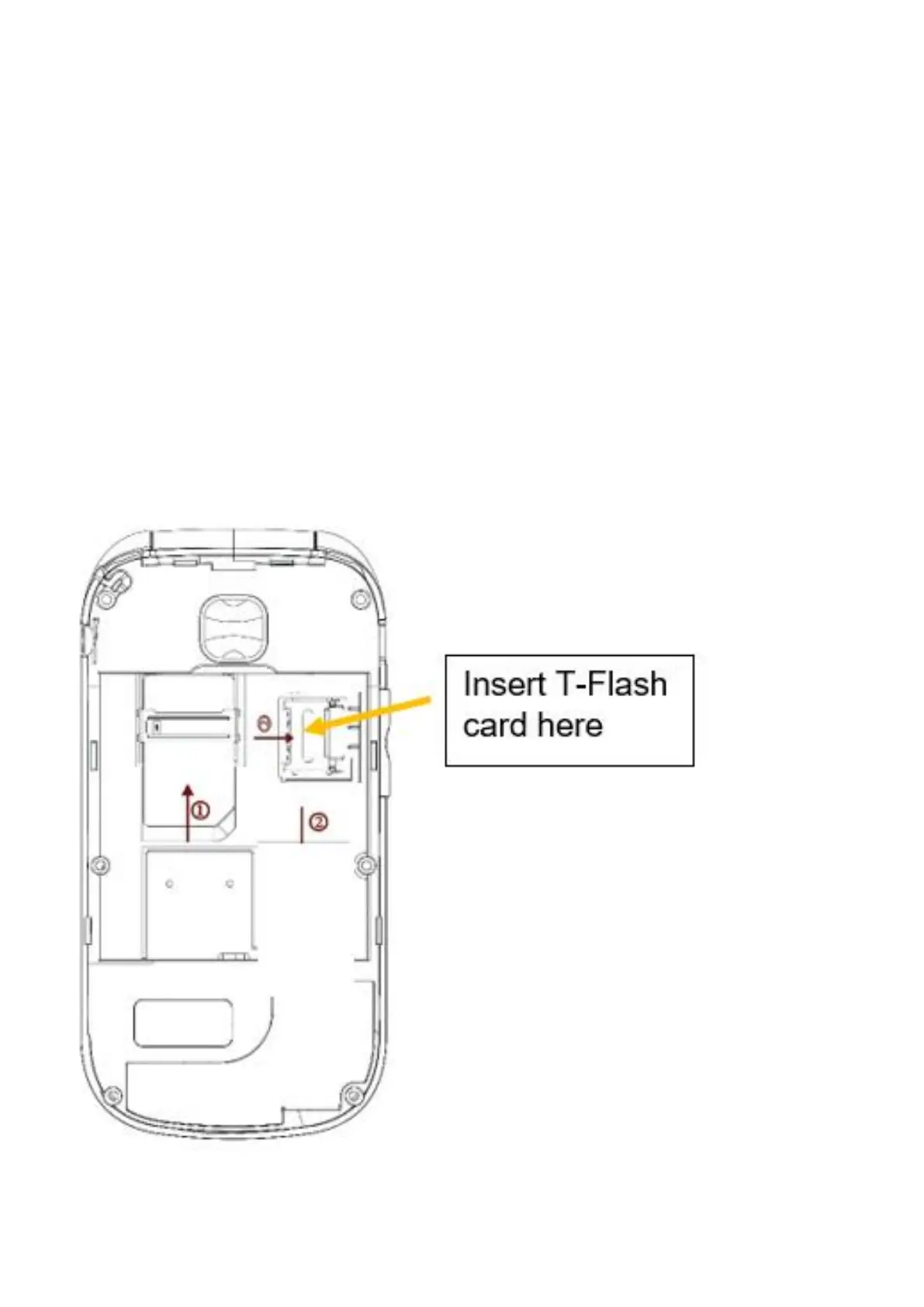 2. Insert the T-FLASH card making sure the gold contacts are