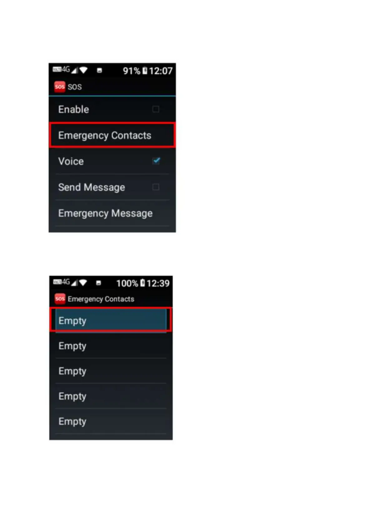 3. Then tap or click ok on emergency contacts to add your contacts you wish to call and