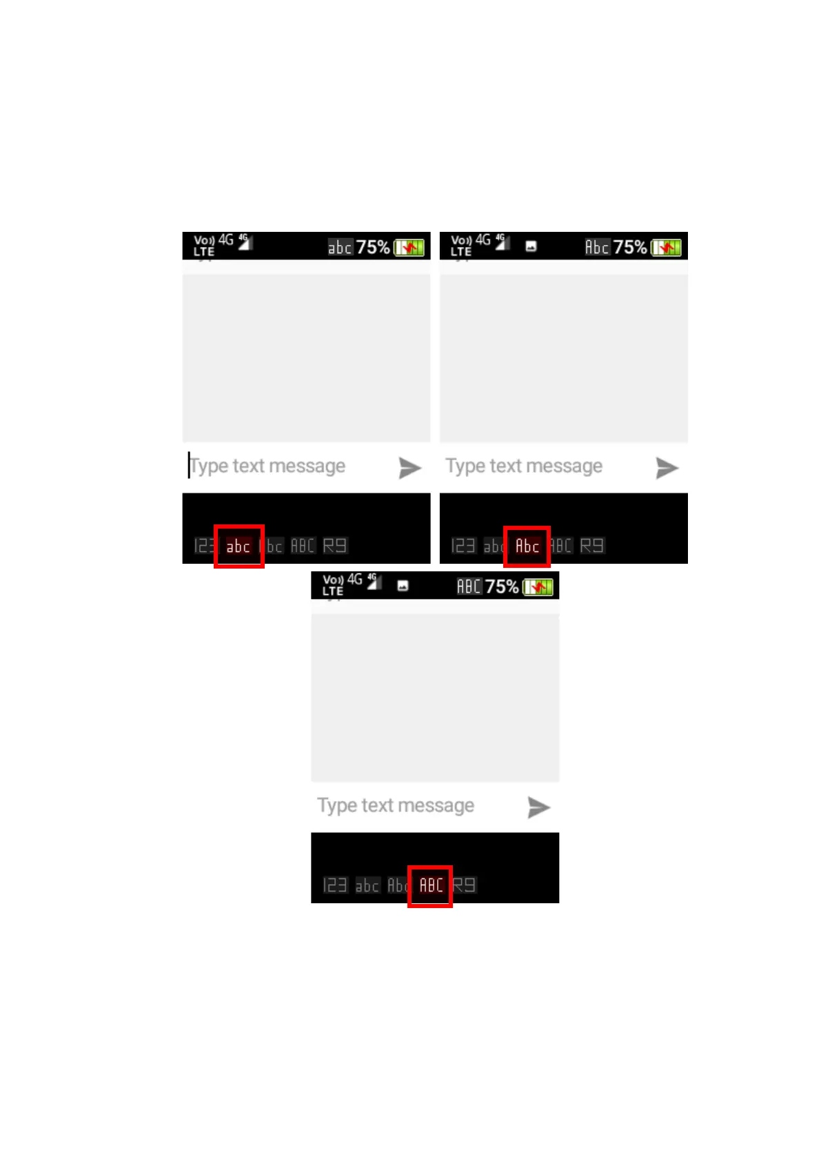 3. abc/Abc/ABC are standard text modes. E.g., When in this mode to type the letter “c,” press