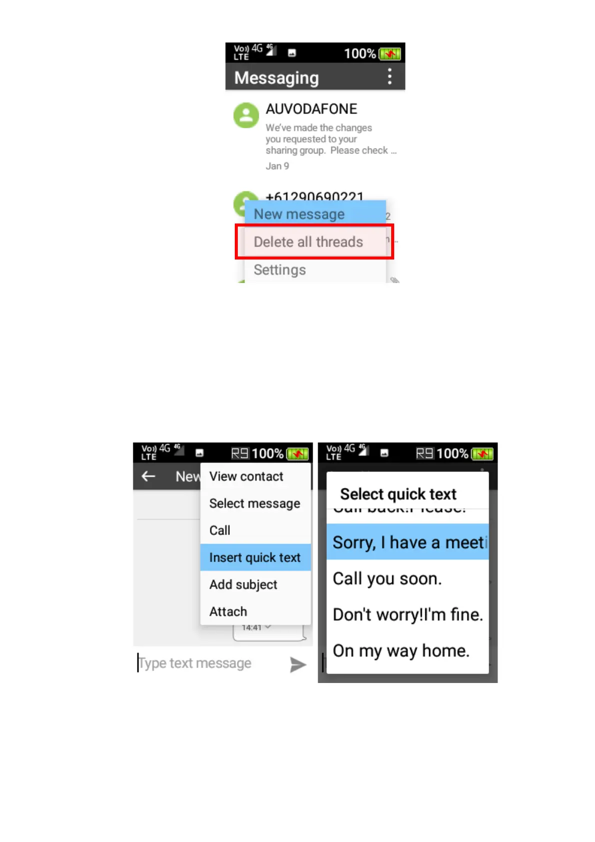 1. Insert quick text – Choose a predefined quick text by pressing the OK key.