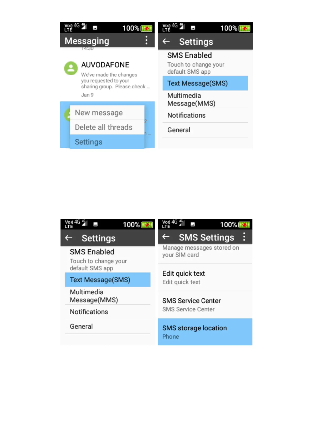 message you send, manage your SIM card messages, edit, and add quick text options (to add
