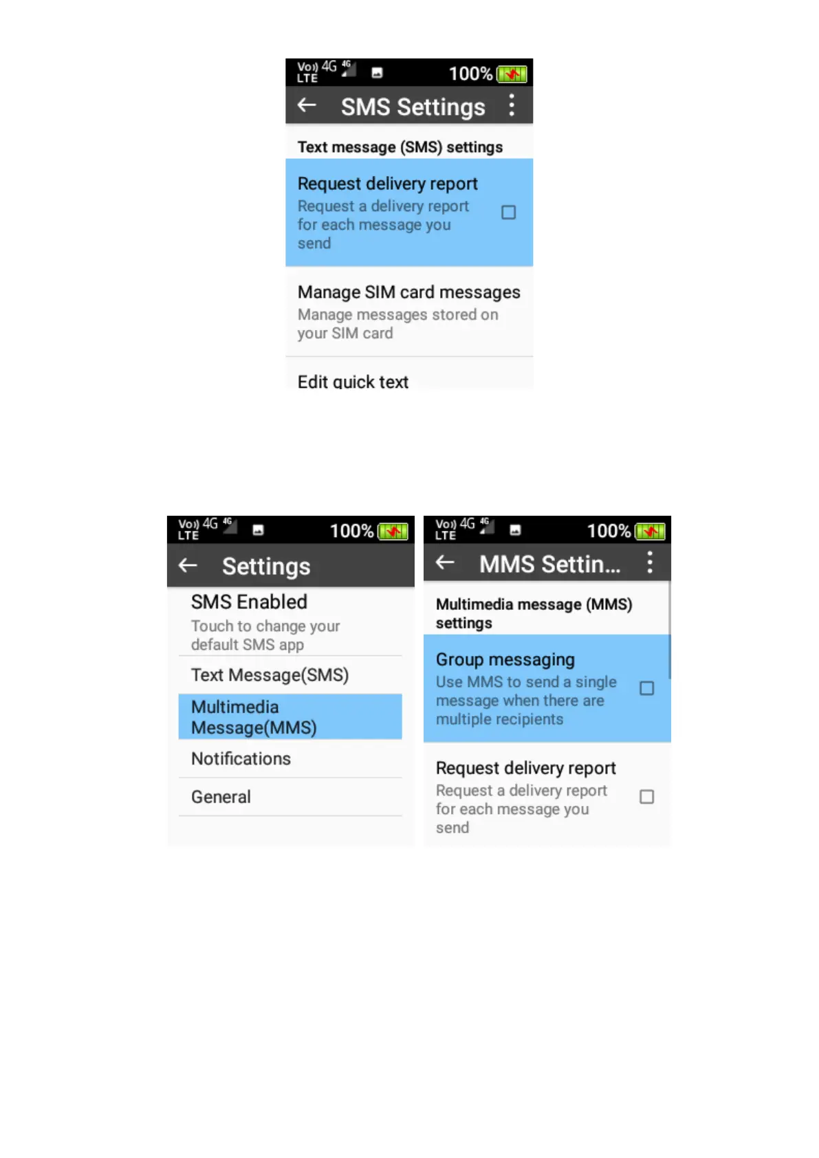 2. Settings Multimedia Message (MMS) You can enable group messaging, request delivery