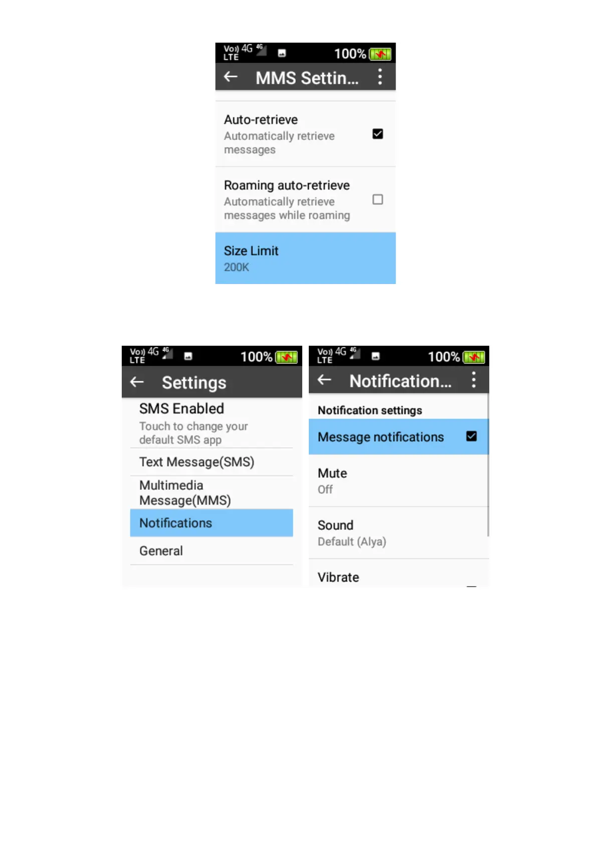message notifications, turn on/off vibrate, turn on/off popup notification.