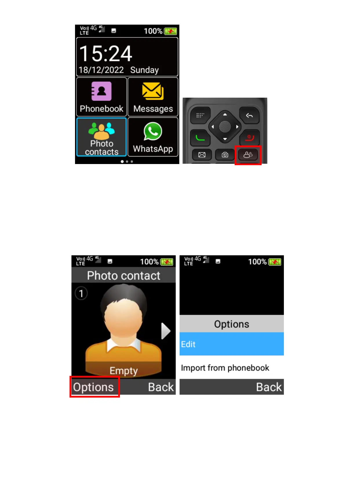 1. To set up or edit a Photo contact, scroll across the home screen using the cursor keys and