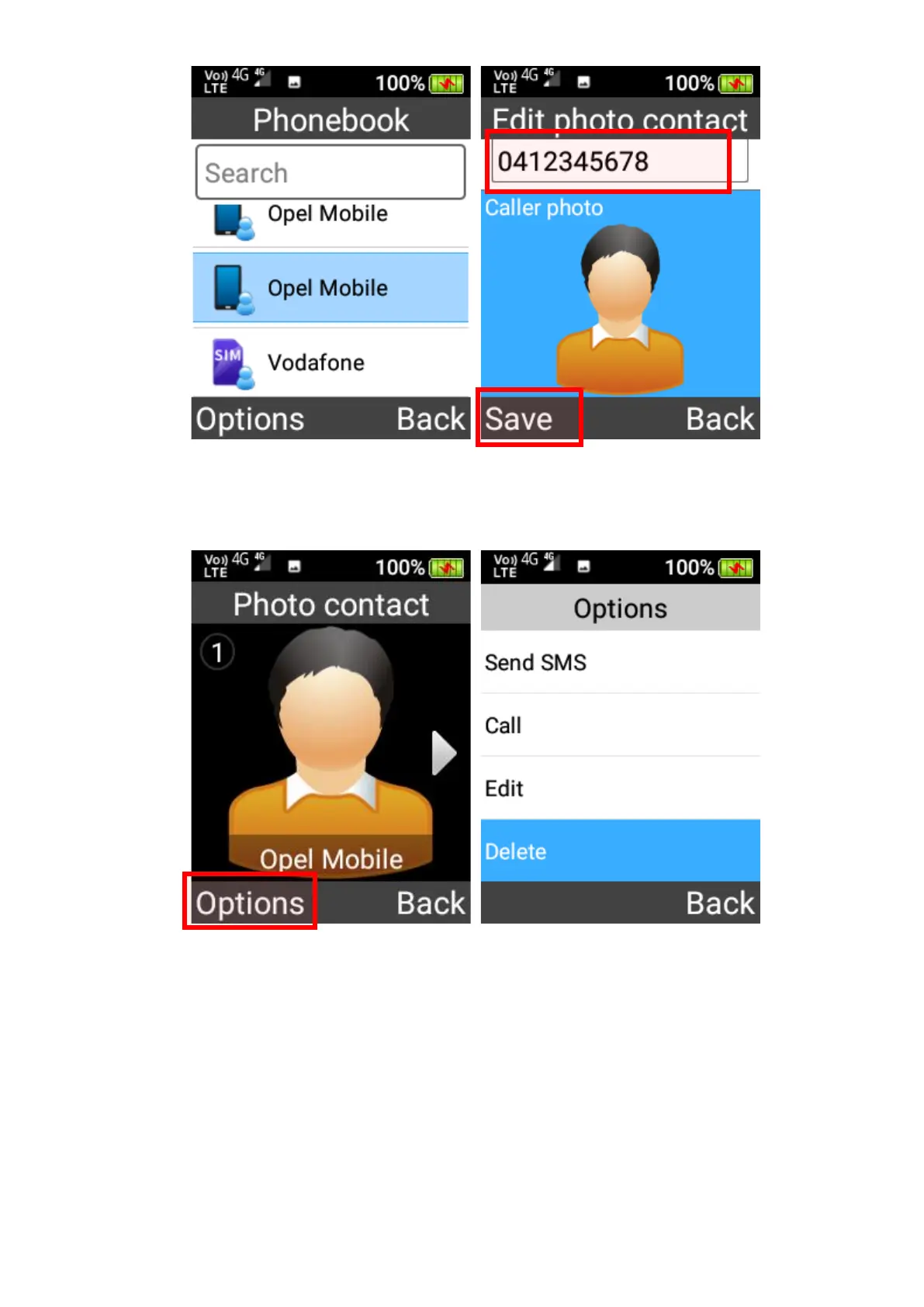2. To delete a Photo contact, highlight the Photo contact, press the left selection key and