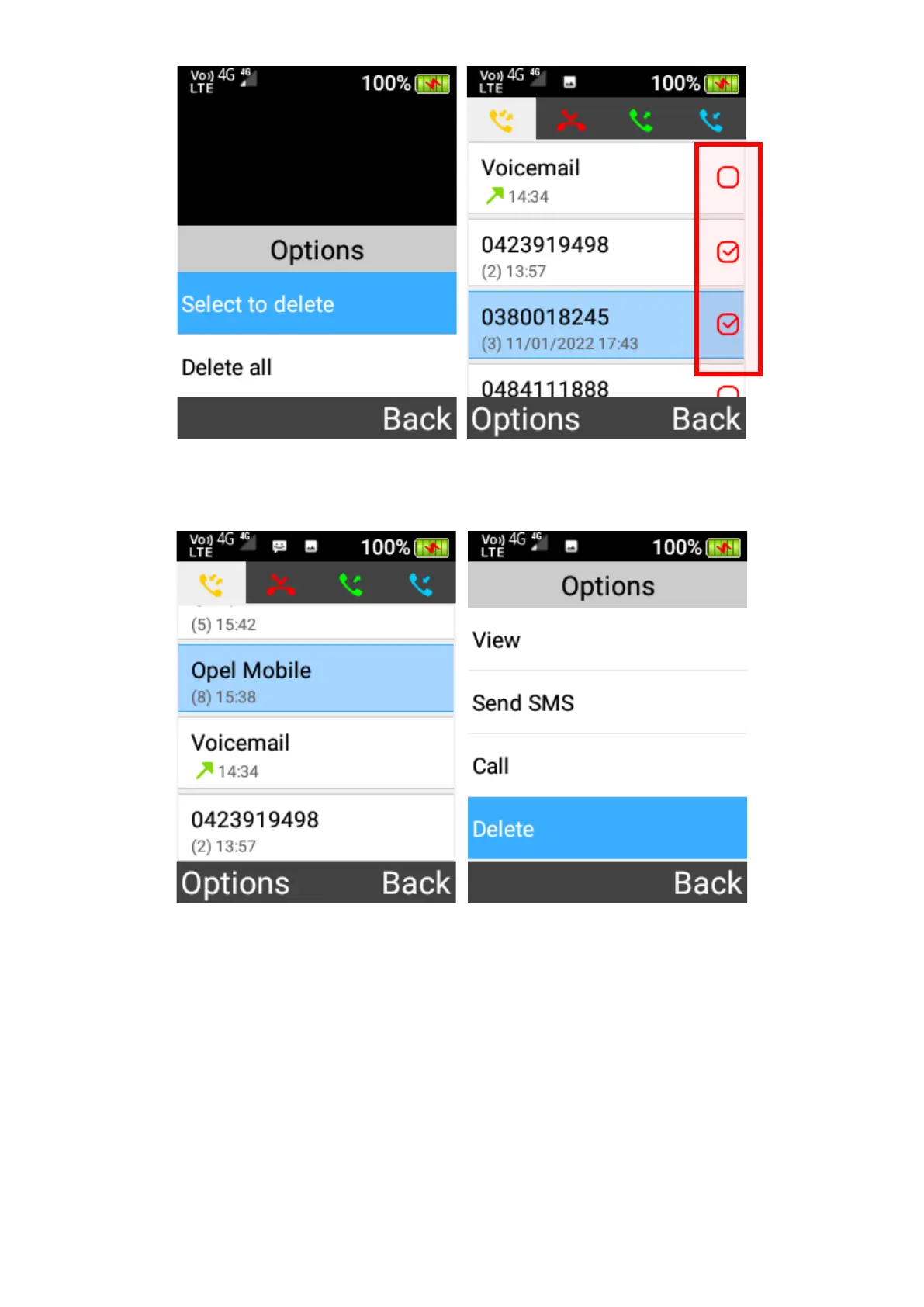 3. Delete individual Highlight the call log you want to delete, then press OK key and select