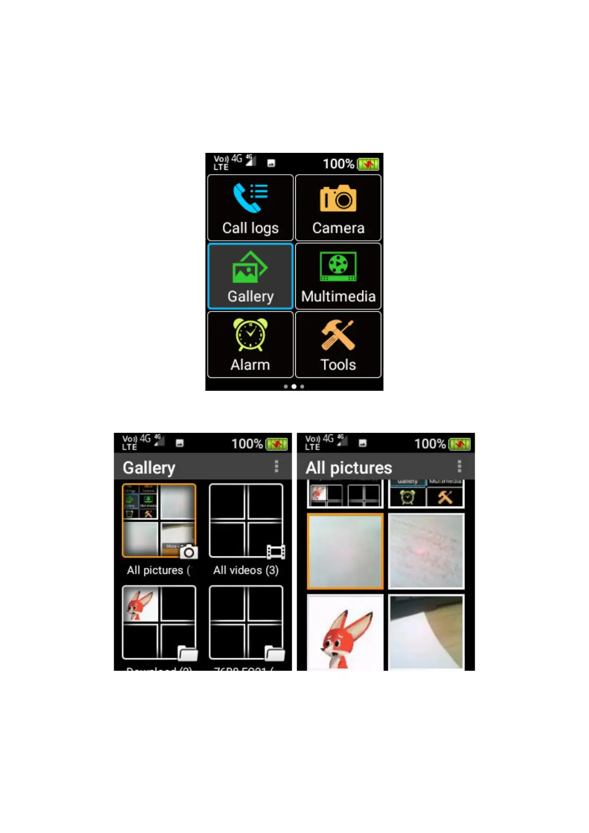 To access Gallery, scroll across the home screen using the cursor keys and press OK key on the