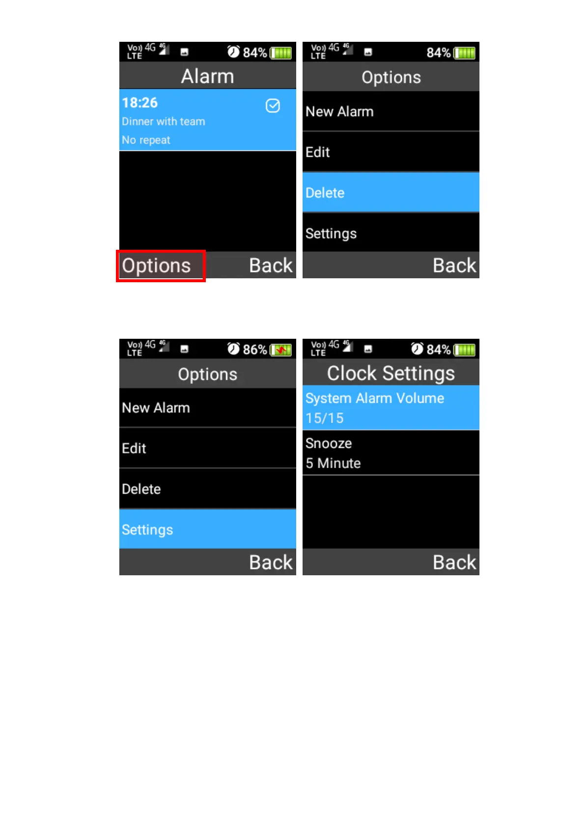 6. Settings Within alarm settings you can adjust the sound volume of the alarm and snooze